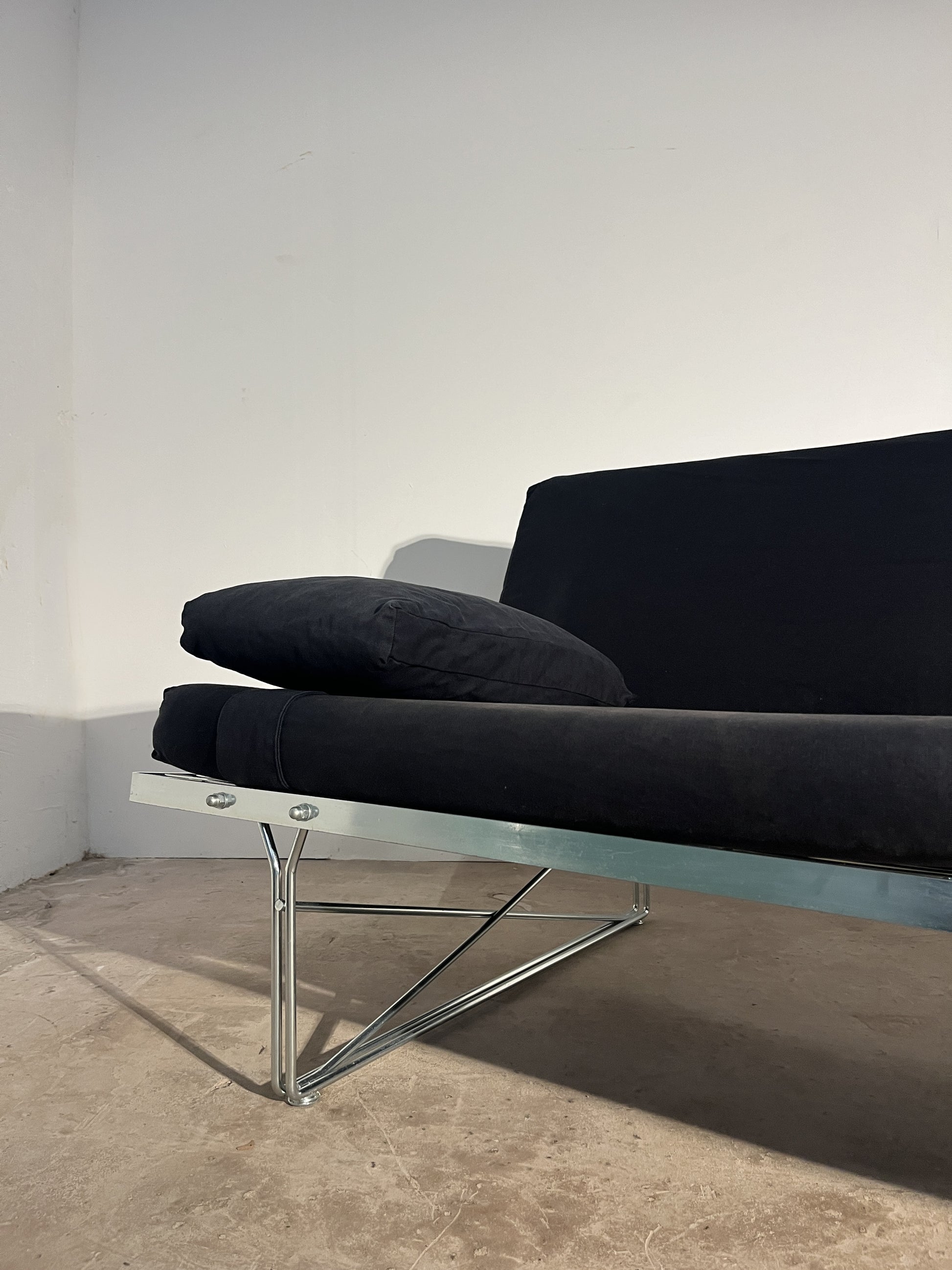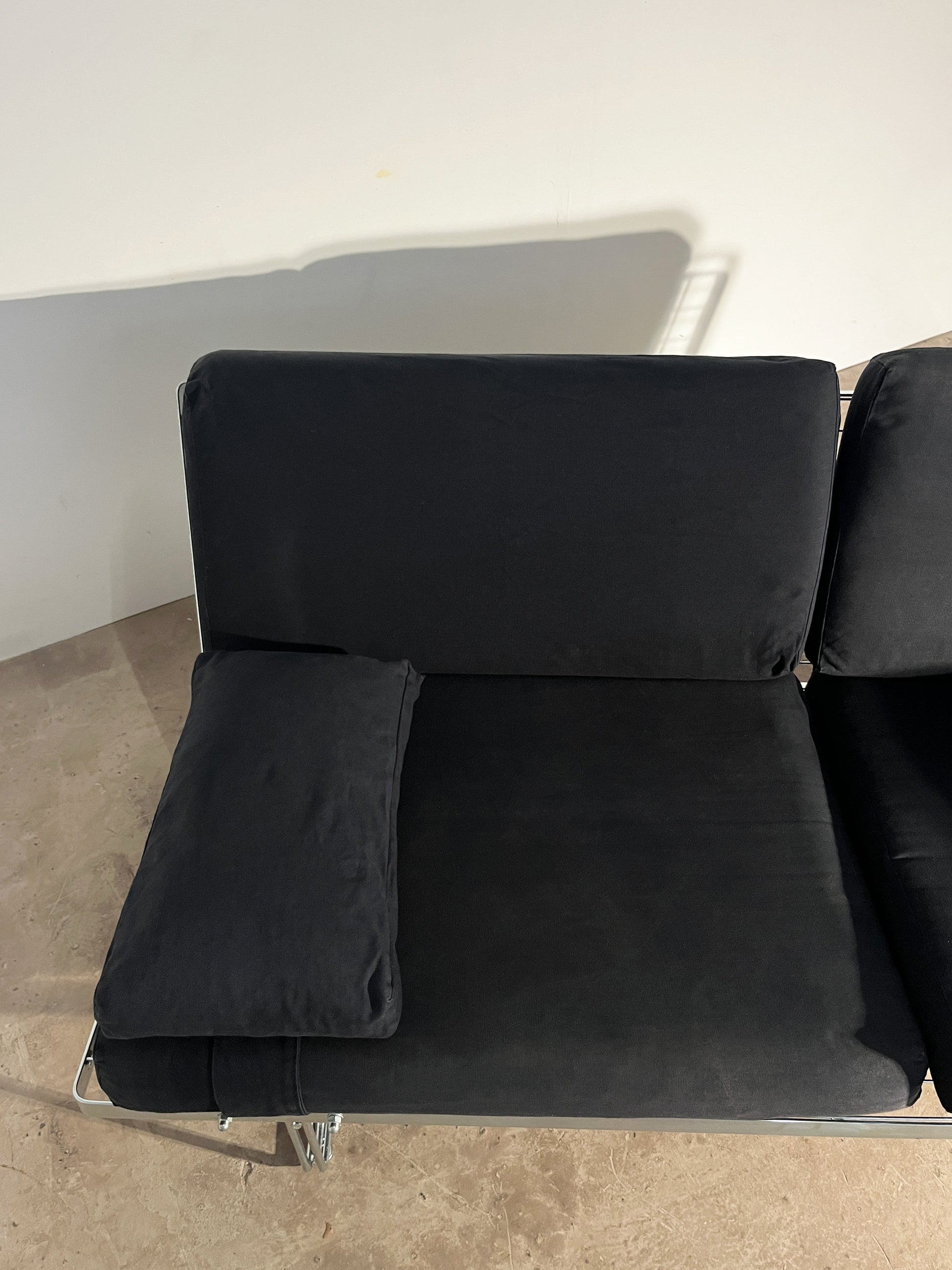 Le Moment combine une structure en acier chromé filaire et des coussins noirs aux lignes sobres. Conçu par Niels Gammelgaard, designer danois formé à l’école du fonctionnalisme, il symbolise l’âge d’or d’IKEA, lorsqu’elle collaborait avec des architectes de renom.
