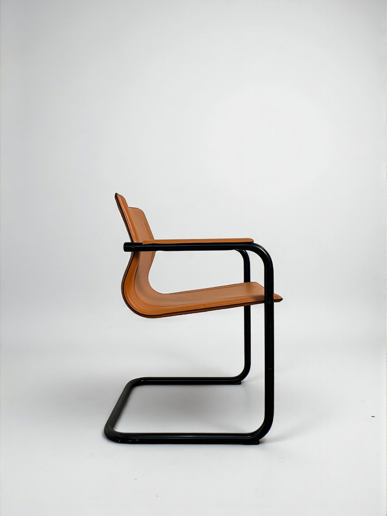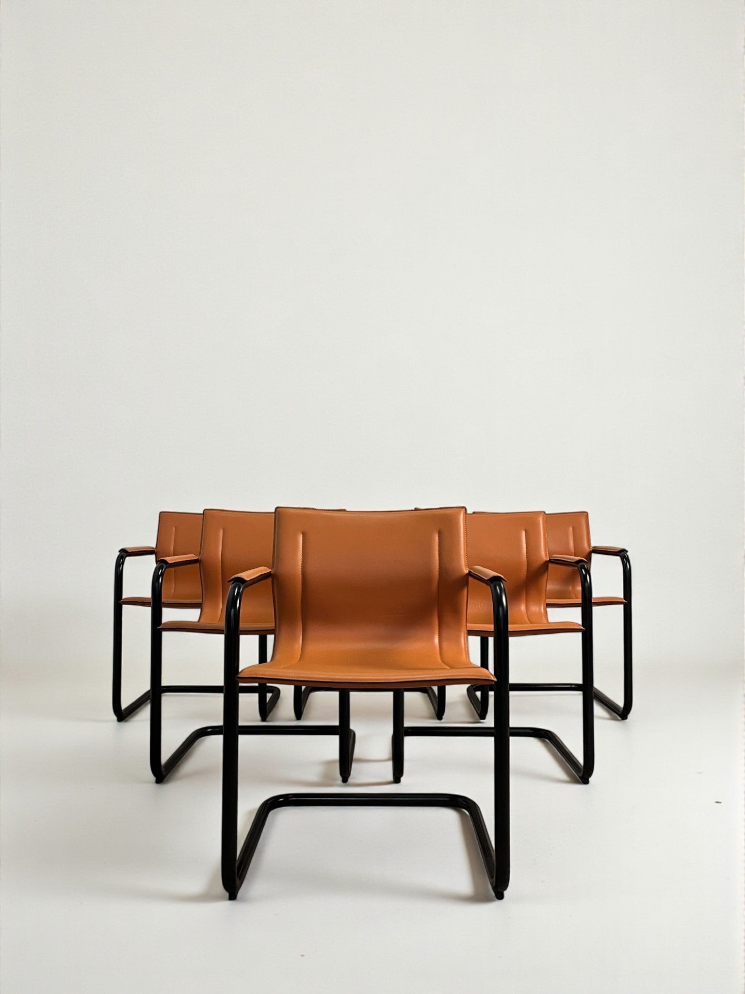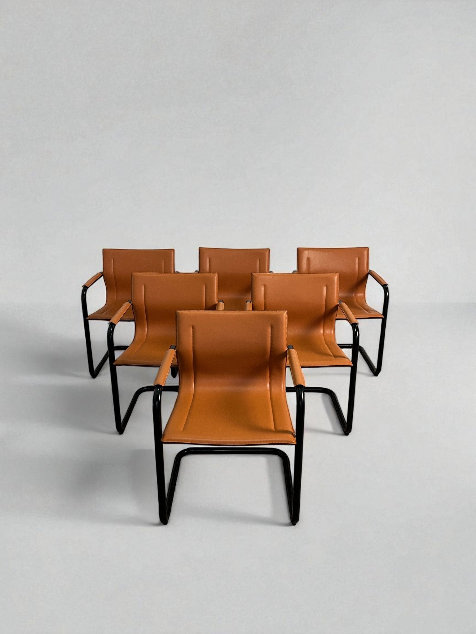 Superbe ensemble de 6 fauteuils cantilever italiens en cuir naturel, modèle MG15, réalisés par Matteo Grassi dans les années 1970.